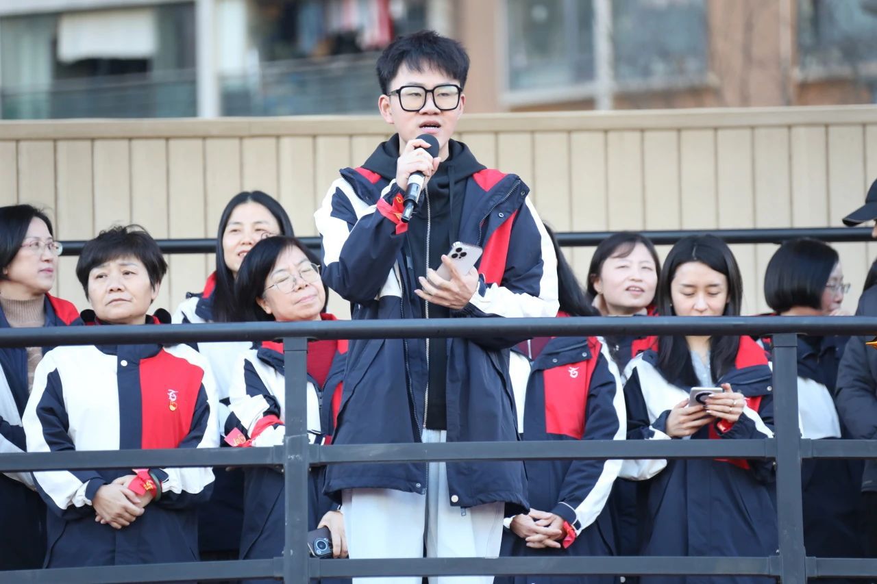 紧接着,高三年级副主任剡耀辉老师以温情回顾师生并肩的三年时光:“从晨光熹微的早读到星月相伴的晚自习,从疫情网课时的云端坚守到备战一模的挑灯夜战,你们的每一分努力都值得骄傲!”他鼓励学子:“百日虽短,亦可创造奇迹;乾坤未定,你我皆是黑马!”