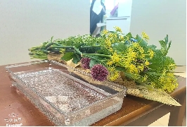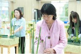 母亲不仅是一个称谓,更是用无声的付出诠释生命教育的人。插花艺术作为载体,既因花道与教育皆需“在约束中创造美”,更希望老师们通过这份指尖的仪式感,将日常难以言表的感恩化作具象的表达。手中的花朵私语呢喃,印证着这份深意——“弯葱花球的紫色让我想起母亲年轻时的纱巾”,“黄蓝配色恰似童年那条碎花裙”。老师们将个人记忆融入创作,让艺术表达与情感共鸣交织升华。