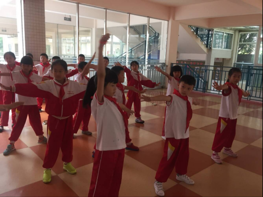 二年级,为了让同学们在紧张有序的学习之余,让身心得到充分的锻炼和放松,朱老师为他们选择了动感十足、节奏明快的爵士舞。